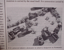 | 容易に手に入る1/72〜1/76スケールのAFVプラモやフィギュアを使ってのミニチュアウォーゲームルール集。マーカーやスケールを作らなければならないが、ボードゲームのブランクカウンターや工作用の角材で作ればよい。 このゲームは指揮系統を重視したゲームなので、自軍のユニットだからと言って何でも出来るわけではなく、上級ユニットからの連絡が途絶えると行動が制限されたりして、文字通り指揮官の苦悩を味わえる。 車両一輌は実際の4〜6輌、歩兵1ユニット(このゲームではスタンドと呼ぶ)が1小隊を表す。 これにより、子供の頃に遊んだ一輌=一輌でのひたすら戦車のたたき合い、という様なむちゃくちゃな展開はなくなるのである。スコードリーダーとパンツァーブリッツの中間的スケールを、ミニチュアで遊ぶといったところか。 ボックスアートはいまいち。 |