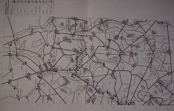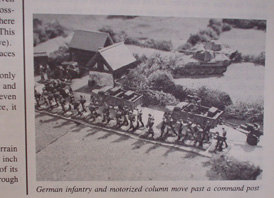 (上) ルールブックの要所要所に写真入り。こんな風に凝ったジオラマでプレイしたら楽しいだろうな! (左) キャンペーンシナリオ用地図「ストルバーグ回廊」 1944年9月アーヘン南方が舞台。 バルジの戦いの少し前の地味な戦線である。 |