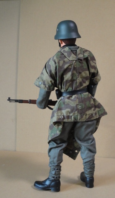 | 国防軍兵士ハンス二等兵 迷彩ポンチョが戦闘SSっぽいけど、服装は国防軍である。付属品はベルトと弾薬ポーチ、双眼鏡のみ。あとピストルケース(開閉せず、もちろんピストルなし)でややさびしい。 |