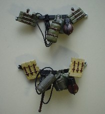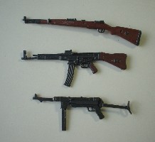 | (左上)上からKar98k、MP44、MP40 (上)パンツァーファースト2種 上:Panzerfaust 60M 下:Panzerfaust 30M (左)柄付手榴弾2種 右:Stielhdgr39 左:Stielhdgr43 →信管を上部につけ製作を簡易にした。 |