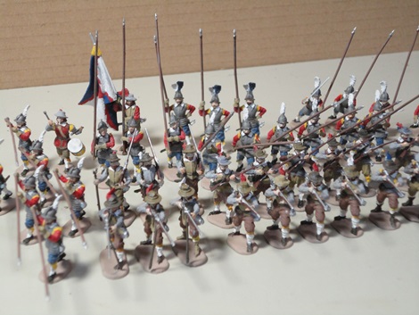 | スウェーデン軍チャールズ17世 砲兵隊 オーストリア軍 マスケット兵&長槍兵 17世紀 ロシア・ピョートル大帝・騎兵隊 18世紀 いずれもZVEZDA製。腕が別パーツだったりしてかなり手間がかかる。できはいいけど。 |