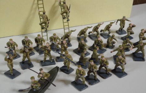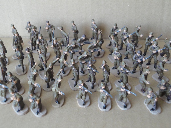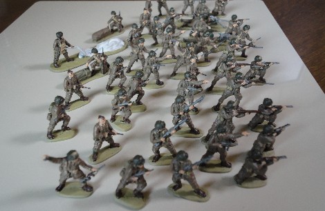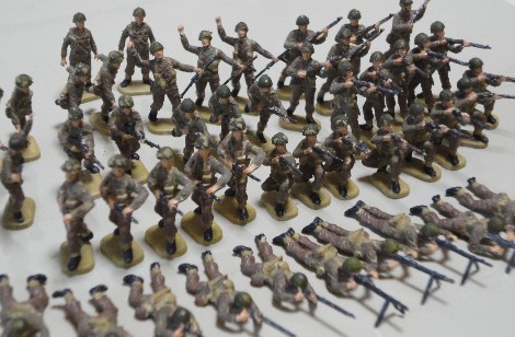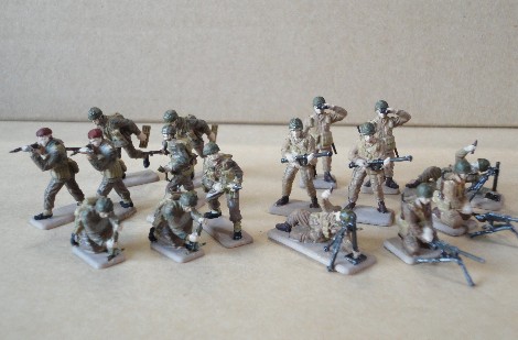 | Airfixの最初期のモデルは出来が悪く、塗装しても見栄えが悪いので塗装しないことにしたものが数点ある。 (イギリス兵、ドイツ兵、イギリス空挺など)近頃リニューアルしたものが出回り始めた。ITARELIより安いのがとりえ。 今後も見つけたら手に入れたい。 Revellの製品はできは良いが、少し他のものよりでかいので、ジオラマなどでは一緒に並べて使えないかもしれない。材質は最も硬いので塗装はしやすい。 |