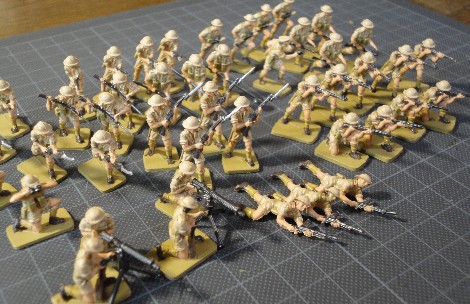 日本軍歩兵 Japanese Infantry <Revell> レベルの新製品だが1/76になったうえできもあまり良くない。しかし塗装は左より日本兵らしく塗れた。 |