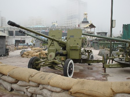 | 各種野砲と対空砲。説明版もなし。かなり錆びも見られる。なぜか白い星が描かれている。 |