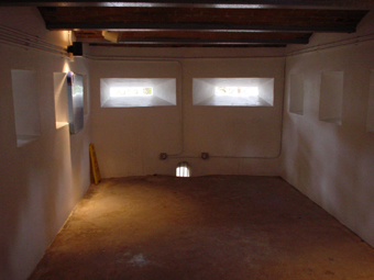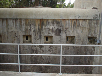 強力なトーチカと小さな銃眼。手前の手すりは後付。