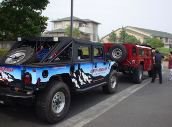 ↓また展示ではなく会場へジープで乗りつける人も多数。駐車場はさながら“第2会場”と化している。 |
