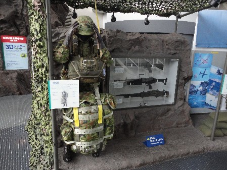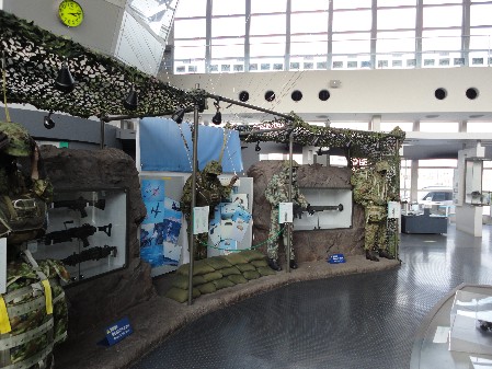 | 3Dミニシアター(各15〜20分程度)では陸自の様々な活動を見ることができるが、これはそれほど迫力はない。 ヘリ操縦シミュレーターと射撃シミュレーター(戦車or攻撃ヘリ)も子供だましの域を出ないものでいまいちだが、 個人装備(背のう、ボディアーマー)などは実際に装着してその重さに驚愕できるし、広報パンフや隊員用新聞もただももらえる。 |