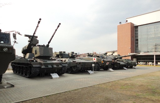 | 主な展示物 屋内 90式戦車、AH・1S攻撃ヘリ、偵察バイク XL250R。 そのほか兵員用各種装備、糧食、活動を紹介する 写真とプラモデル。 屋外:10式戦車、74式戦車、74式105ミリ自走砲、150ミリ自走砲 87式高射機関砲、89式装甲車、96式装甲車、 94式水際地雷敷設車、ヘリUH-1イロコイ。 正面入り口:軽装甲機動車 |