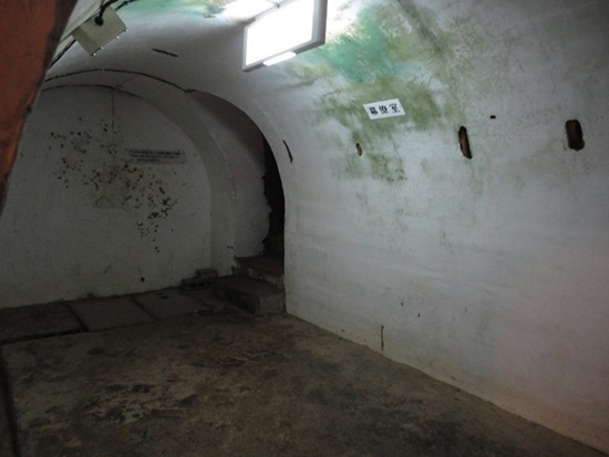 | 幕僚室。 | 幕僚たちが手りゅう弾で自決したあとを示す説明書き。 |