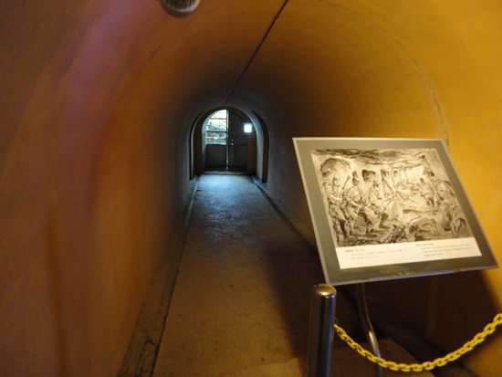 平日だったので比較的すいていたが、 修学旅行の団体なども来ていた。 一人で静かに回りたかったので少し待って入ったのが正解。 切符売り場でおじさんに「中は広いんですか」と聞いたら、 「いやぁ、15分くらいで終わるよ」って簡単に言われたが、 簡単に見て帰る気分にはなれなかった。 空調も効いて中は快適で、 当時の過酷な状況は想像することも難しかった。 旧海軍司令部壕 沖縄県豊見城市字豊見城236番地 車で那覇空港から20分、那覇バスターミナルからバスもあり。 大人420円、子供210円 問合せ 098-850-4055 |