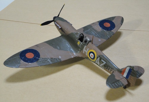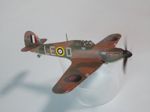 | ハリケーンMk.1 ハセガワ1/72 スピットファイアとハリケーンは子供の時「空軍大戦略」で見たから馴染み深い。仮組みで飛行状態に。 |