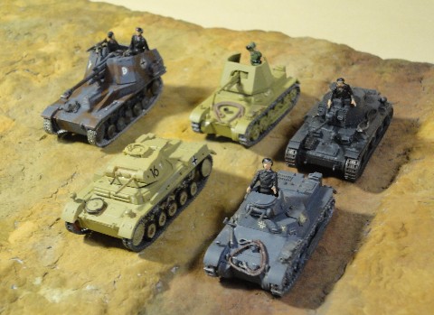 手前右から…T号戦車 kpfw.Tausf.b (S72)、U号戦車 (M76)、