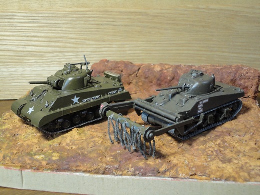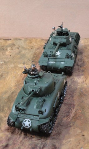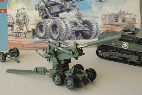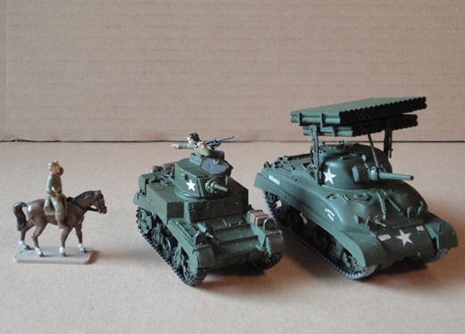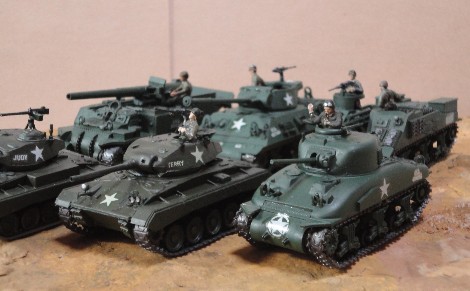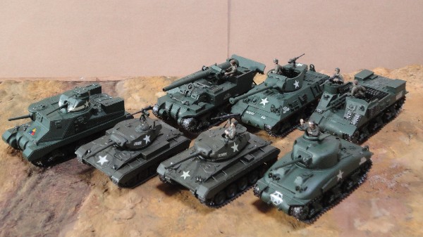 手前左から M3Lee(H72)、M24(M76)、M24(H72)、M4A1(F76)、 後方左から M12・155mm(H72)、M36ジャクソン(F76)、M7B1・105mm(F76) |