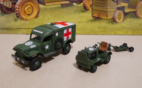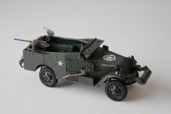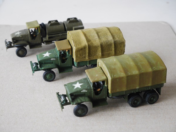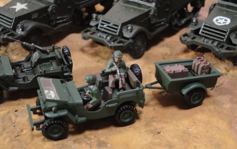 | 手前左から M3A1ハーフトラック(H72)、M4A1ハーフトラック・モーター(H72)*、M3A1ハーフトラック(H72)、 後方左から カーゴ・トラック(H72)、M5トラクター(H72) *コンバットに登場するドイツ軍ハーフトラックに改造。 |