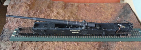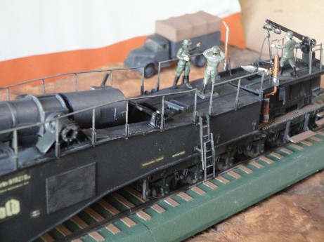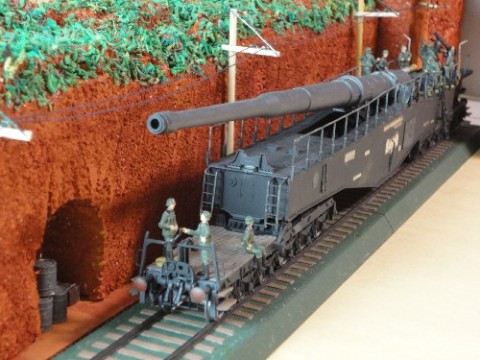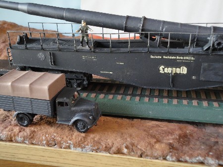 | GERMAN RAILWAY GUN LEOPOLD 列車砲K5(E)レオパルド 口径 28.3cm 射程 59〜62km ハセガワ 1/72 ミニボックスシリーズ28 車体は42cm、線路ディスプレイは50cm もある。兵士が付いてないのが残念。 カールに24人も付いてるからいいけど、 これだけ買った人はさびいしいぞ。 |