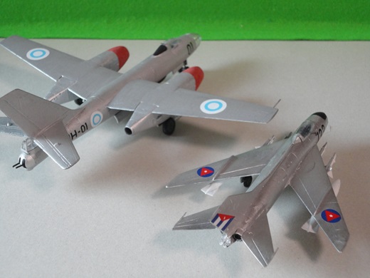 | Mig-19& Ilyushin IL-2B タミヤ 1/100 ミニジェットシリーズ タミヤのイベントなんかで安売りしてたんで気分転換に購入&製作。今見ると50年代のジェット機ってのも不思議なカッコしてるねぇ。塗装にバリエーションがないんで少しでも変わった感じにしたいとキューバ空軍(Mig-19)とフィンランド空軍(IL2B)で。(2013/7) |