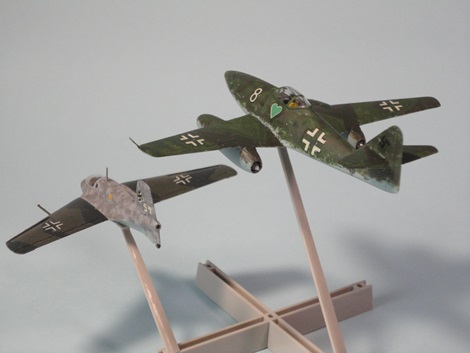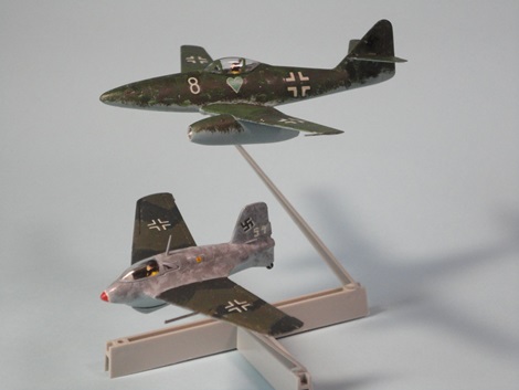 | Me262A & Me163B 田宮 1/100 ミニジェットシリーズ (2015/6) 中古で買った懐かしのミニジェット。古くてデカール死んでて苦労したが何とか完成。小さいから部品も少なく、迷彩塗装も楽。それにしても戦後のジェット機に比べると小さい! |