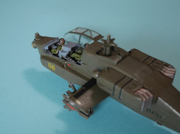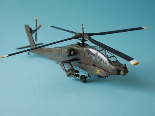 | AH-64A アパッチ ハセガワ1/72 これも中古で安かったので購入。前面OD(オリーブドラブ)というのが重く暗いイメージがあって好きじゃなくて、砂漠塗装にでもしようかと思ったが、デカールもOD用のみなのでODで塗装。出来上がりを見るとそれほど重苦しさもない。 なかなかかっこいいので次もヘリをと思いカタログを見たが、アパッチが一番かっこいいな。他に作るならシーホークSH-60 あたりか。 コックピット内部がよくできていて、キャノピーはカチッとはまるので接着せずはめ込んだだけ。 |
