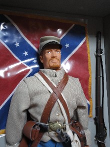 | 時々気が向いた時にヤフーオークション覗くんだけど、そこでお宝見つけると運命的出会いを感じることがある。 この春(2011/3)南軍兵士フィギュアを探したらなんと!GI JOE を発見!(WW2のドイツ兵なんかはよく出てるけど高いのでパス)南軍兵士安い!でも誰も入札しない! …嬉しいような悲しいような複雑な気分だが、私の所に来る運命だったと解釈して落札です。 |