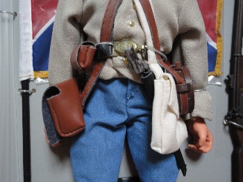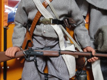 | 左“CLASSIC COLLECTION” 右“Johnny Reb” 基本装備…ベルト・ショルダーバッグ・水筒・マスケット銃などは同じ。 どちらも南軍旗がついてて嬉しいが、よく見ると星の並び位置が変。(真ん中に寄っちゃってる) メイド・イン・チャイナの悲しさか…。 |