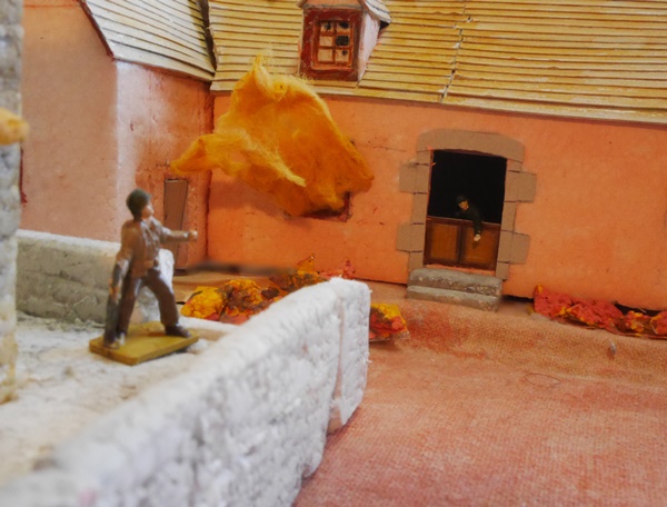 2.リトルジョンの援護のもと、ケーリーは洋品店2階の窓へ手りゅう弾をぶち込む。 |