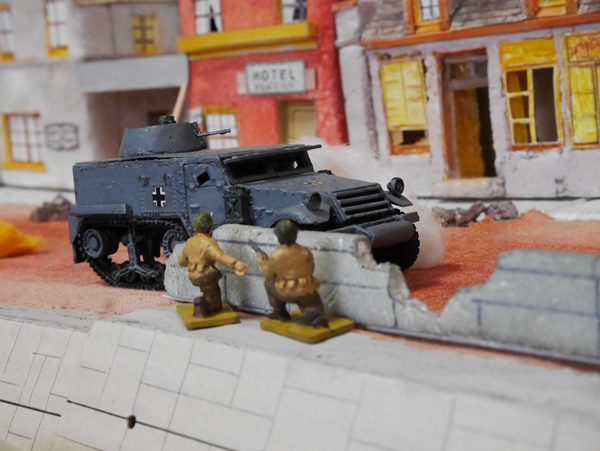 10.逃げ惑う村人たちを追い立てるハーフトラック。 |