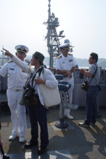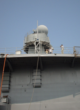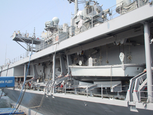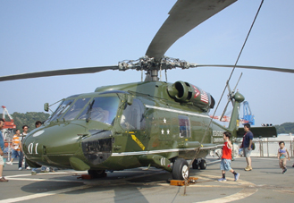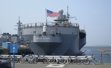| 年に一回の一般開放日である。 軍艦に乗船できると言うことだが下調べもしなかったので、今年は何に乗れるのかもわからず行ってみた。 米軍の揚陸艦と自衛隊(なぜ?)の護衛艦だった。 ブルーリッジ(LCC19) これは第7艦隊の指揮艦だそうだ。偉い船なのである。 しかし今の時代指揮を執るのに必要なものはコンピュータと通信設備、レーダーとアンテナだけである。 後方にヘリポートがついていてヘリが一機。色を塗り替えたら南極観測船だと言われても海軍シロートの私にはわからんかったであろう。 |