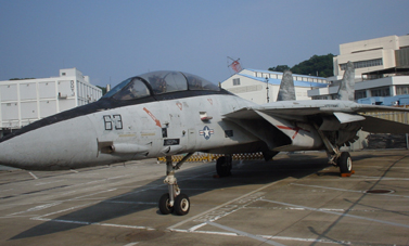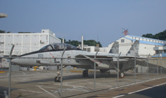 | 2時間の行列の途中フェンス越しにF−14を発見。 やっぱ船より飛行機だなぁ…と実感。 |