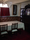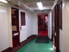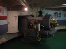| 艦内の各部屋はすべて公開され、 中に入れる部屋には、様々な資料が展示されている。 ビデオやミニチュア模型による日本海海戦の解説もある。 第2次大戦後、連合軍により大砲・煙突などが撤去されてひどい状態だったらしい。 どの部分が復元されたのかもわかるように、復元修復作業の記録もあったらよかったと思う。 内部の各部屋を回り、資料をあたり、甲板を歩き大海原に目を移す。 ジュースの自販機設置の休憩室もあり、2、3時間ゆったり過ごす。料金は500円だ。 |