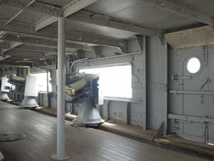 | 艦橋上部からの眺め。海の広がる右側に気持ちを集中し、 壮大な戦いを空想してみる。 |