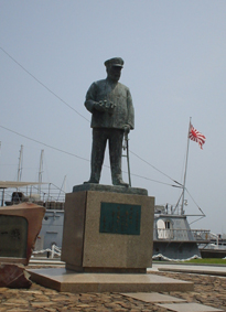 (左) 東郷元帥銅像 (右) 広場より左舷を見る |