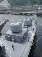 私は「たかなみ」は米軍横須賀基地で乗船済みなので、 うらが→しらね→あすかコースをじっくり見て、あと支援艦で港内一周して、 ヘリのデモンストレーションなど見て楽しんだ。 先日の米軍横須賀基地(8/4)よりずっと楽しめた。 米軍ファンで、米海兵とおしゃべりしたいという人以外は、海自がおすすめ。 事前にハガキ申し込み(抽選)により乗船できる艦艇があるので どうせなら早めに調べて申し込んでおくといい。 |