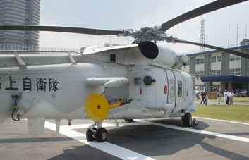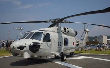 | ヘリ・SH−60J (左写真)同機でフロッグメンの降下訓練デモをやっているのが、後方に写っている。 | |